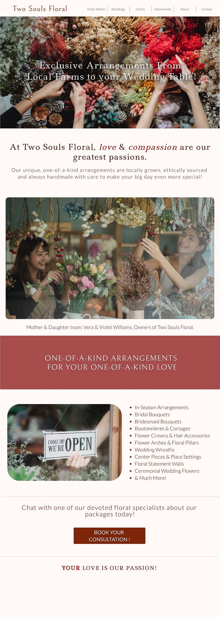 It’s all about passion. The bride is passionate about her groom, the groom is passionate about his bride and Two Souls is passionate about providing high-quality, sustainable floral arrangements.